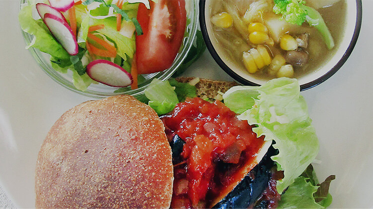 季節ごとにラインナップの変わるスイーツは、国産の小麦粉の旨味とてんさい糖やきび砂糖の甘味がやさしく広がります。朝でも夕方でも気軽に食べられる軽食は酵母から手作りしている自慢のバンズを使ったベジタブルハンバーガーなど。