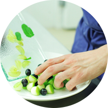 お食事には、地元成田の産地直送野菜を使用。農家の方に直接納入していただいているので、流通ストレスがかからない安心の野菜です。肉、魚などは使わず、副菜まで一品一品手作りしています。